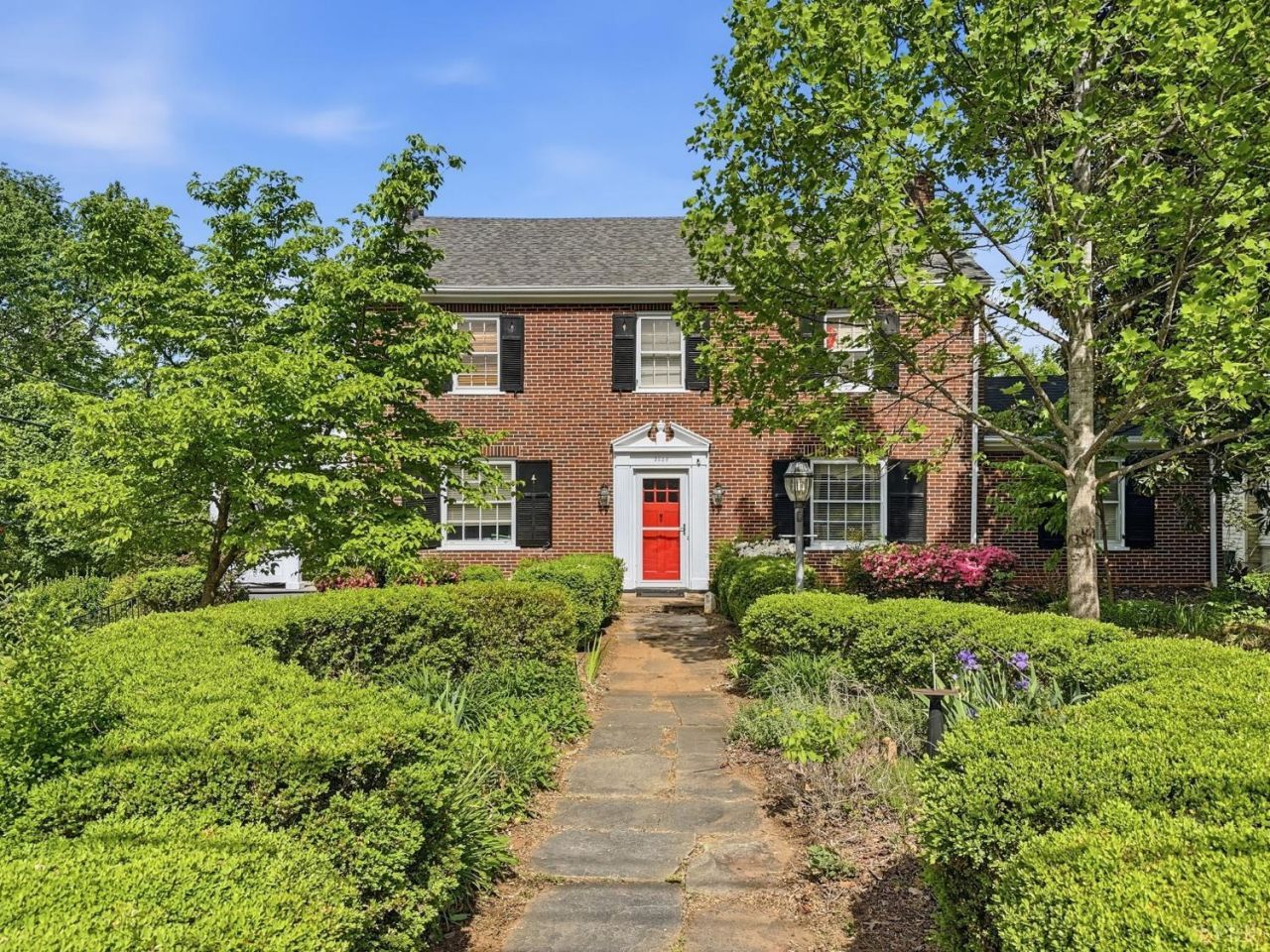 Stately Fort Hill home with 4 or 5 bedrooms and 3 full baths. This classic brick home built in 1935 offers over 2500 sqft of finished living space. The main level features a large living room with fireplace, side patio, and main level bedroom with private ensuite bath with custom tile walk-in shower. The original hutch in the kitchen was the inspiration for the updated kitchen offering granite countertops and a walk-in pantry. The second level features 4 bedrooms and a full bath. The 2nd level primary suite with private rooftop patio also connects to the hall bath and a connecting bedroom to use for an office, sitting room, or nursery. Cedar closets in every room. Walk-up attic for possible future expansion. Plenty of off-street parking on a large concrete driveway. Large deck overlooks a mature yard with perennial flowers, a fig tree, and cute garden shed. Terrace level offers a workshop garage, laundry room with wash tub sink and new full bath. New roof in 2023.