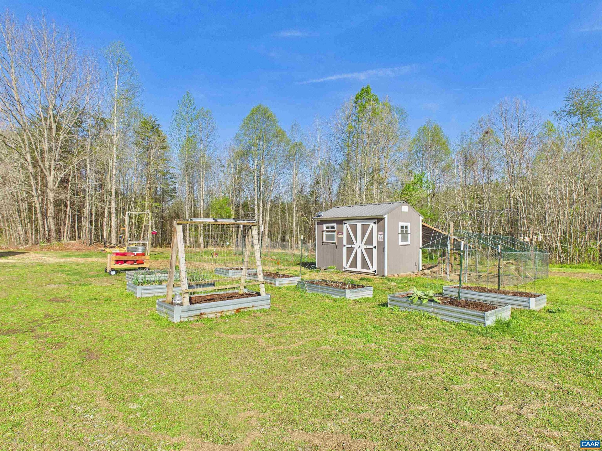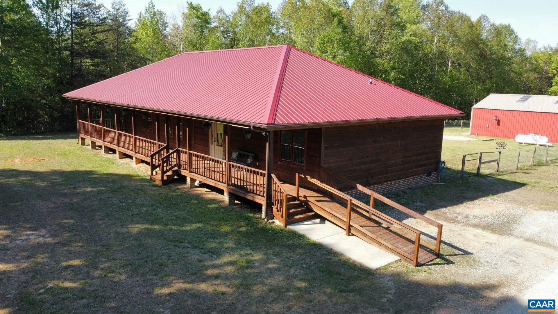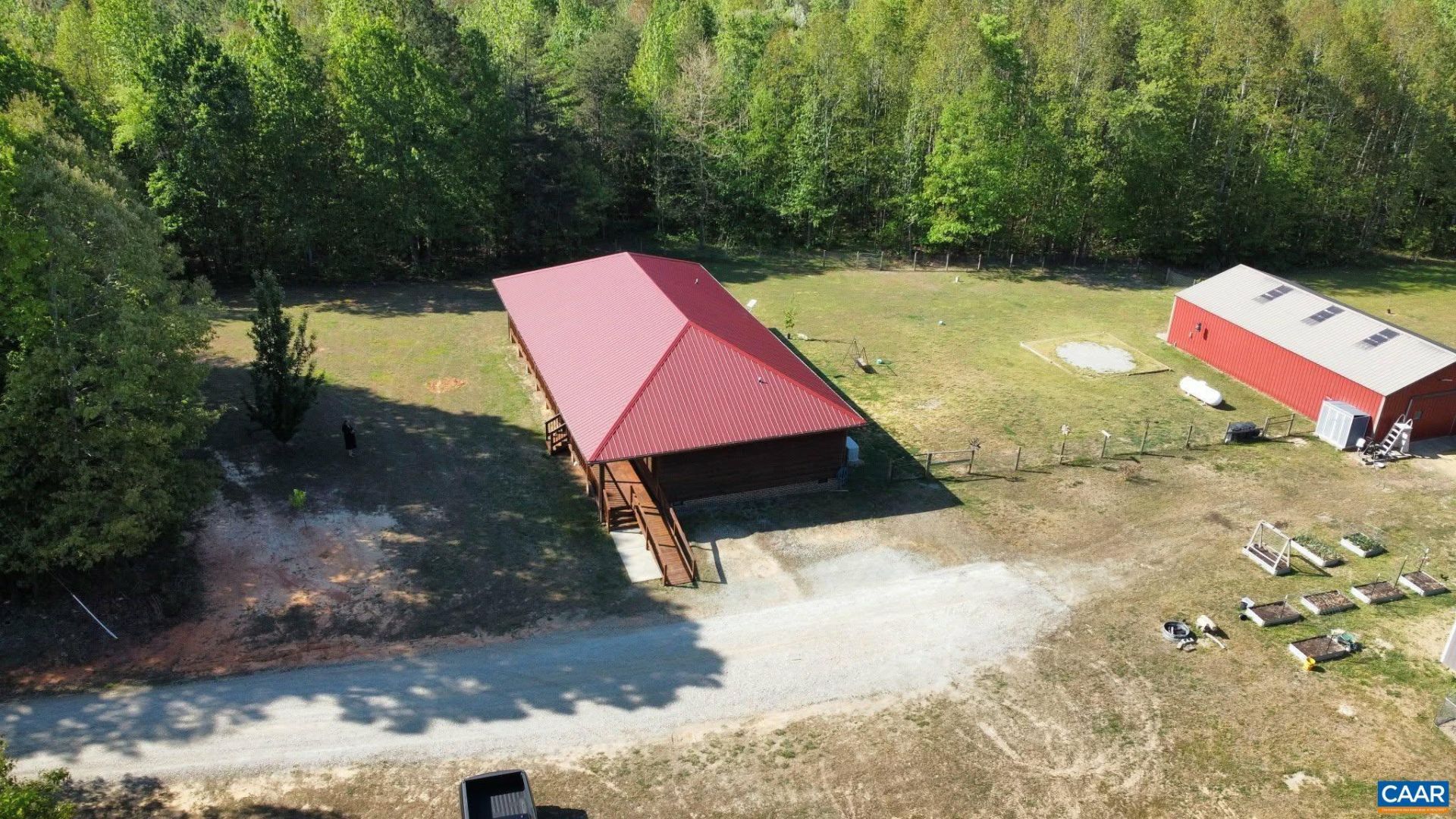 Welcome to your serene retreat at 469 Jenkins Church Rd, where tranquility meets modern comfort on 23.70 private acres. This charming cedar log cabin features a wrap-around porch perfect for relaxing and enjoying peaceful views, all while staying conveniently close to Powhatan, Richmond, Farmville, and Charlottesville. Inside, soaring cathedral ceilings highlight the spacious living room, creating a warm, open feel. The kitchen offers ample cabinetry and a generous eat-in area, making it ideal for gatherings and everyday living. The primary suite provides a private escape with cathedral ceilings, a ceiling fan, plush carpeting, and a walk-in closet. The en-suite bath includes a stand-up shower for added comfort. Two additional bedrooms offer cozy spaces for family or guests. A separate laundry room adds convenience, while the impressive 30x50 garage can accommodate up to four vehicles, a workshop, or storage for hobbies. The property also includes a chicken coop and plenty of space for outdoor living or animals. A propane Generac whole-house generator ensures peace of mind year-round. Enjoy the best of country living with easy access to nearby towns. Schedule your private showing today and you might see some wildlife that cohabits